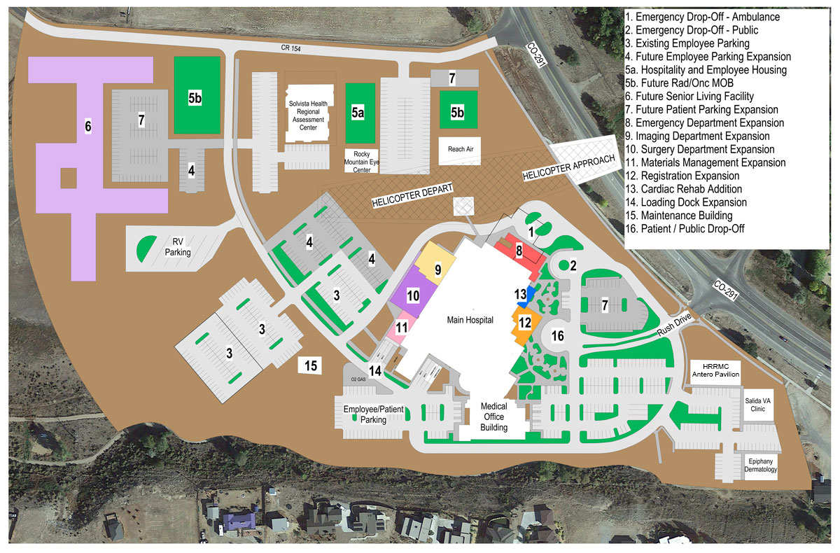 The below map shows HRRMC's five-year plan to expand services on our medical campus, as well as offer additional resources for our employees and our aging community.