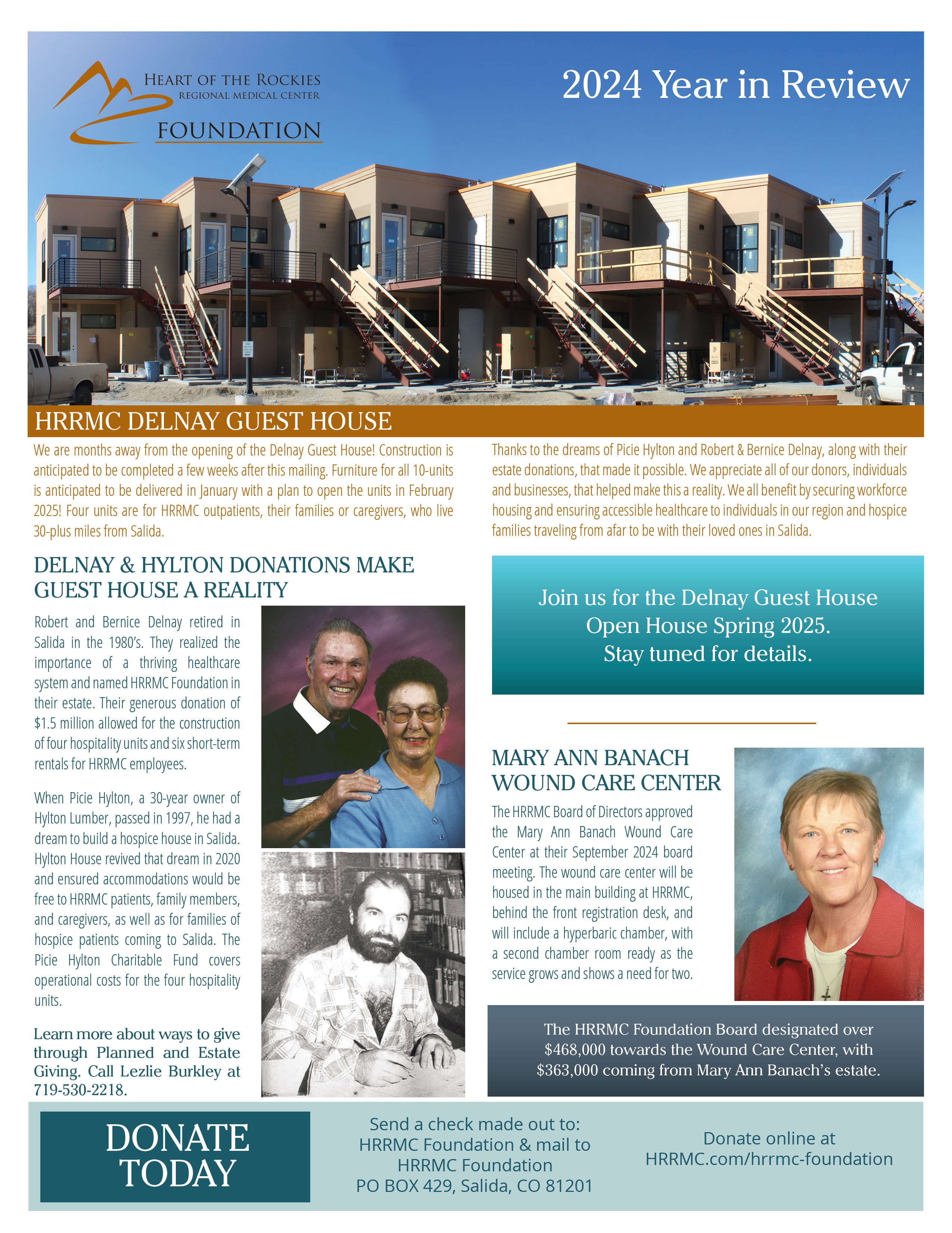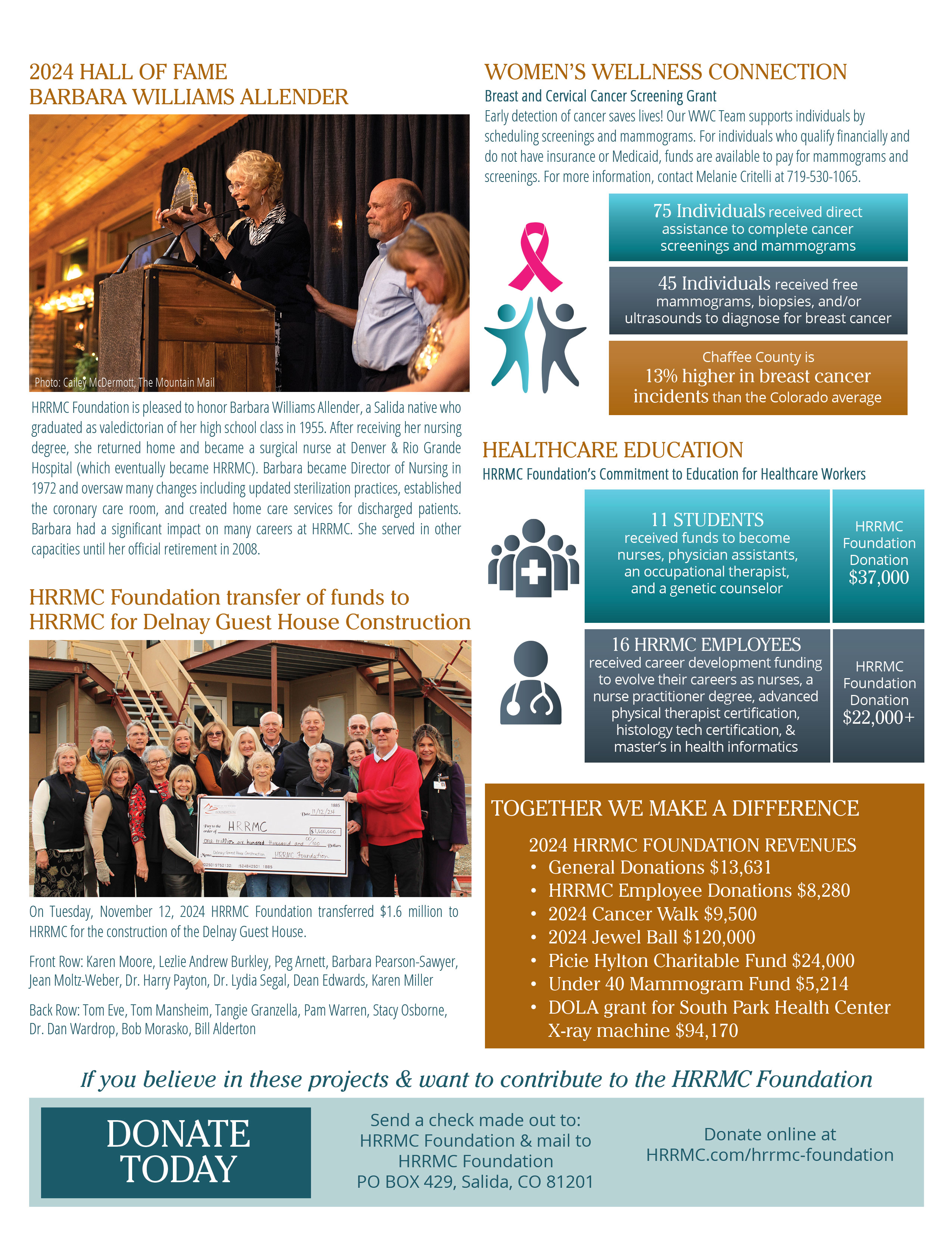 The HRRMC Foundation, established in 1986 as Salida Hospital Foundation (FEIN 74-2450217), is a 501c3 nonprofit and charitable organization that is dedicated to financially supporting Heart of the Rockies Regional Medical Center, our aligned missions focus on the enhanced health of our communities.