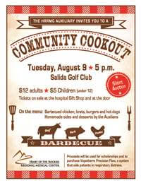 The HRRMC Auxiliary is hosting a community cookout and silent auction on Tuesday, Aug. 9, at 5 p.m. at the Salida Golf Club, 404 Grant St.