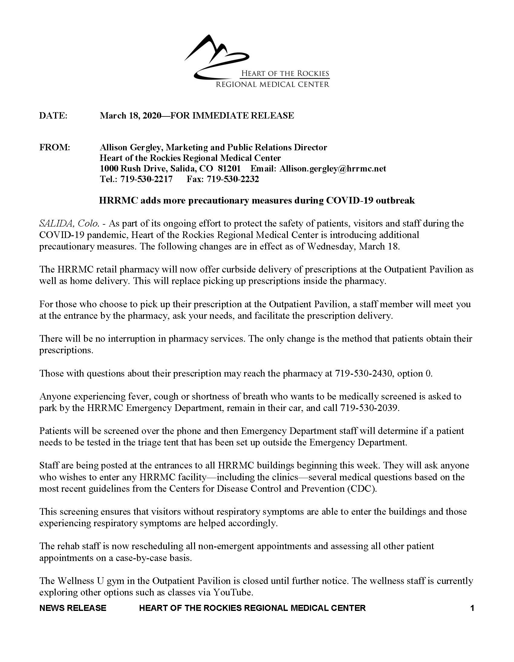 DATE: March 7, 2022—FOR IMMEDIATE RELEASE FROM: Lezlie Burkley, Foundation Director Heart of the Rockies Regional Medical Center Foundation 1000 Rush ...